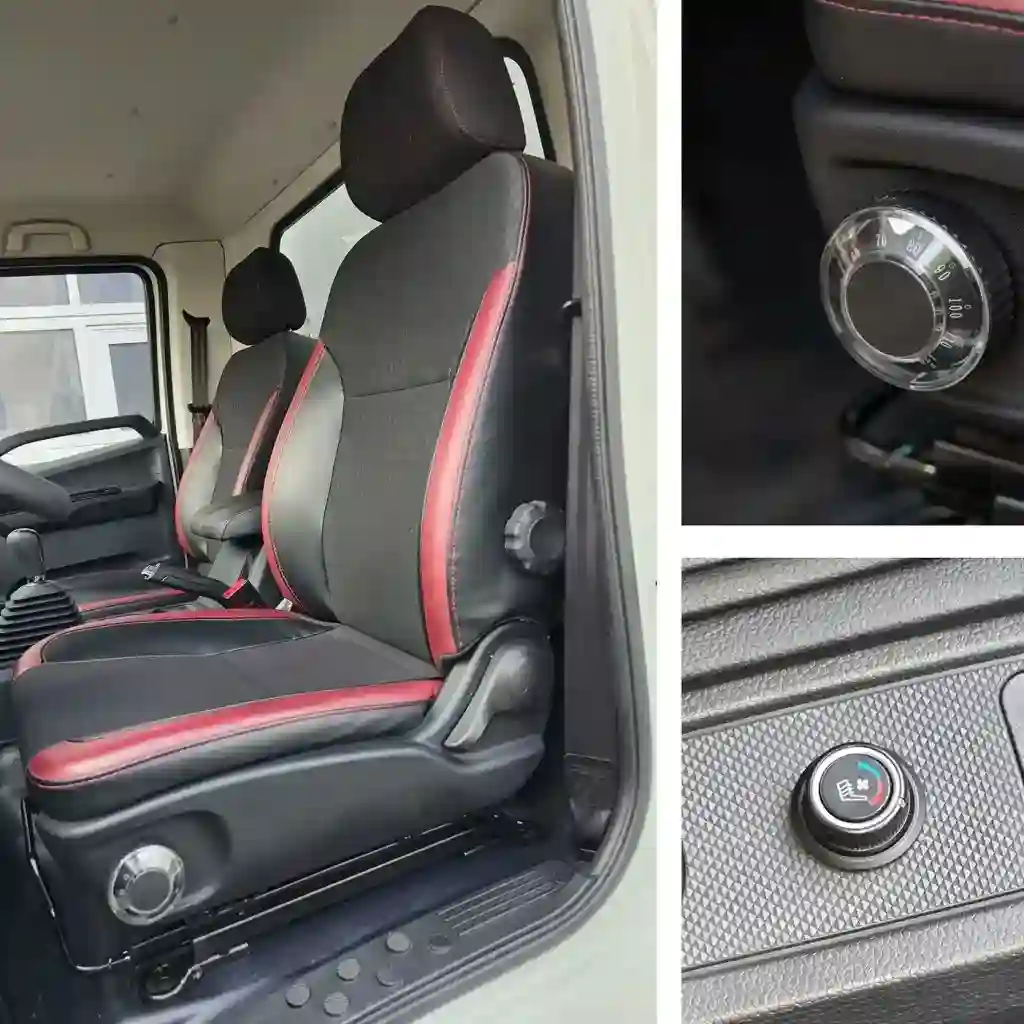 Интерьер кабины: система коCиденье водителя с механической амортизацией, вентиляцией и подогревом регулируется в восьми положениях. Предусмотрена регулировка жесткости под вес водителя от 50 до 120 кг